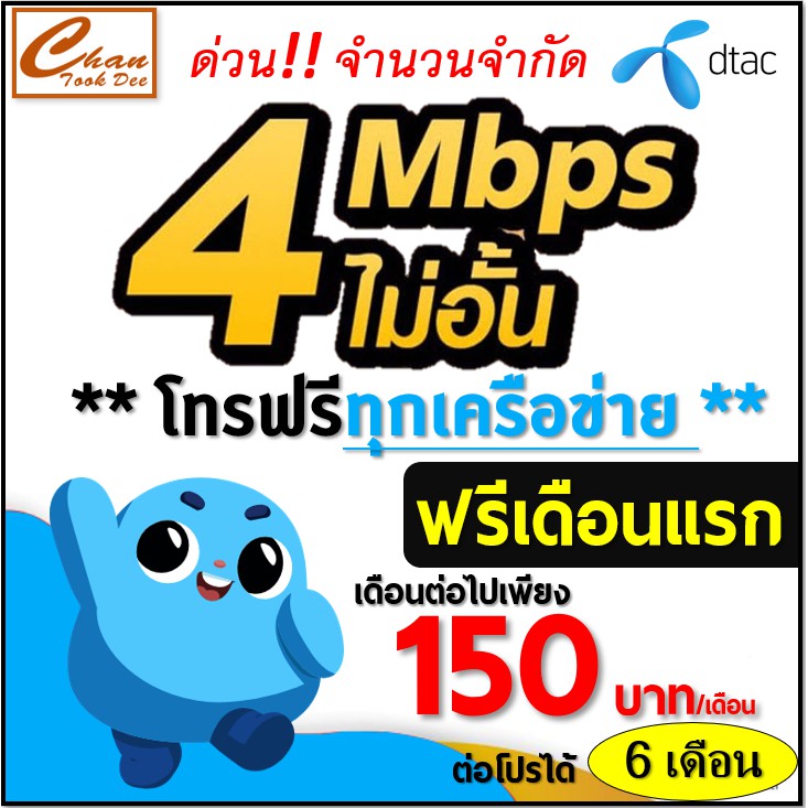 โปรเน็ตดีแทค 3 เดือน 1,800 บ ดีแทค. ไม่ได้มีเฉพาะแค่ ais กับ true แต่ dtac ก็มากับเขาด้วย สำหรับโปรโมชั่นเน็ตแบบไม่ลดสปีด + โทรฟรีทุกเครือข่าย แบบรายเดือน ในราคาสุดพิเศษ 2 แพ็กเกจ ได้แก่.
